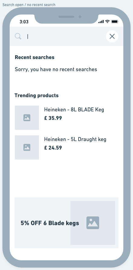 When a user taps into the search field, the immediate interaction should open a full screen modal.