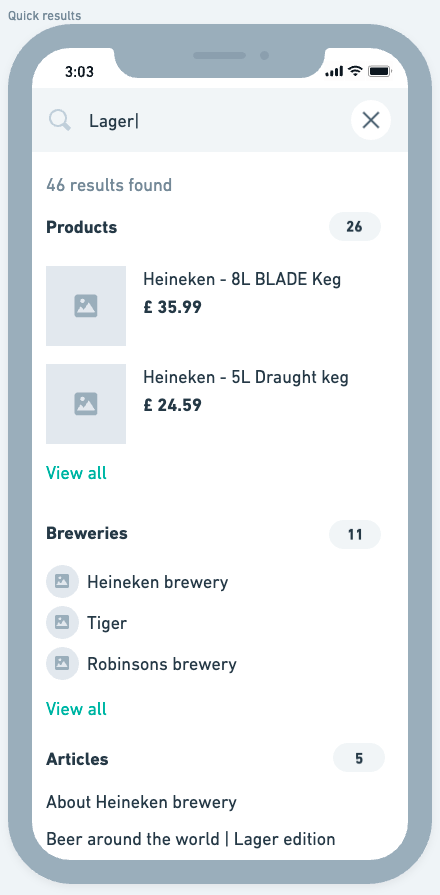 - Although we are categorising results in the dynamic search, the display could be more engaging and easier to interact with
